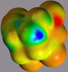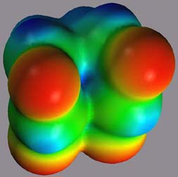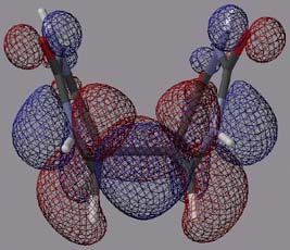 3.2. The cis,syn Cyclobutane Uracil Dimer Radical Cation 1*+The electrostatic potential surfaces of the initial product of the oxidative one-electron transfer, 1*+, are shown in Figure 7.[17] Surprisingly, an almost symmetric structure with a planarized cyclobutane ring is obtained at the UHF/6-31G* and the Becke3LYP/6-31G* levels of theory. Whereas for neutral cyclobutane, the planar ring corresponds to a transition structure for ring inversion, the harmonic frequency analysis identifies the structure shown in Figures 7 and 8 as minima on the potential hypersurface. This geometry is presumably due to the fact that the alignment of the two pi-systems leads to a better stabilization of the radical cationic character. The quasi-symmetrical geometric structure of 1*+ is also reflected in a symmetrical electronic structure with almost identical charge patterns in the two pyrimidine rings, as can be seen in Figure 7. The cationic character is virtually localized in the N1-N6/N1'-C6' bond, resulting in a stabilization of the positive charge as an imminium ion. Figure 7: Electrostatic potential of 1*+, projected onto an isodensity surface. left: view of the carbonyl moiety; right: view of the cyclobutane moiety