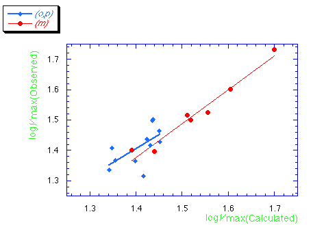 The correlation of calculated logVmax from eqn. (3) and