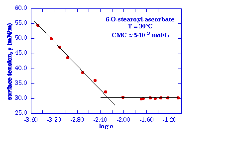 6-O-stearoyl-ascorbate water solutions at T=30°C and pH=6. CMC